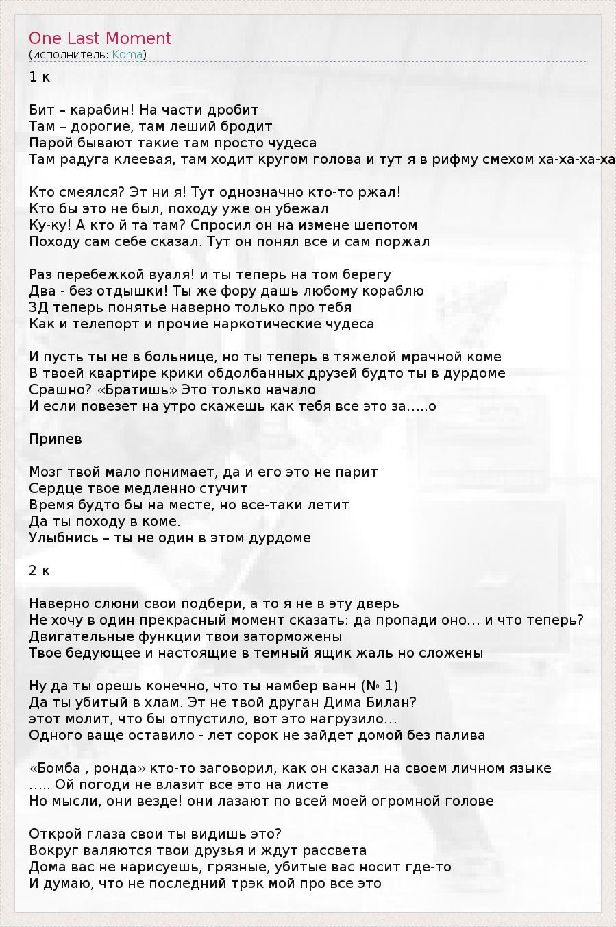 А как ты думаешь, о чем песня "One Last Moment" ?