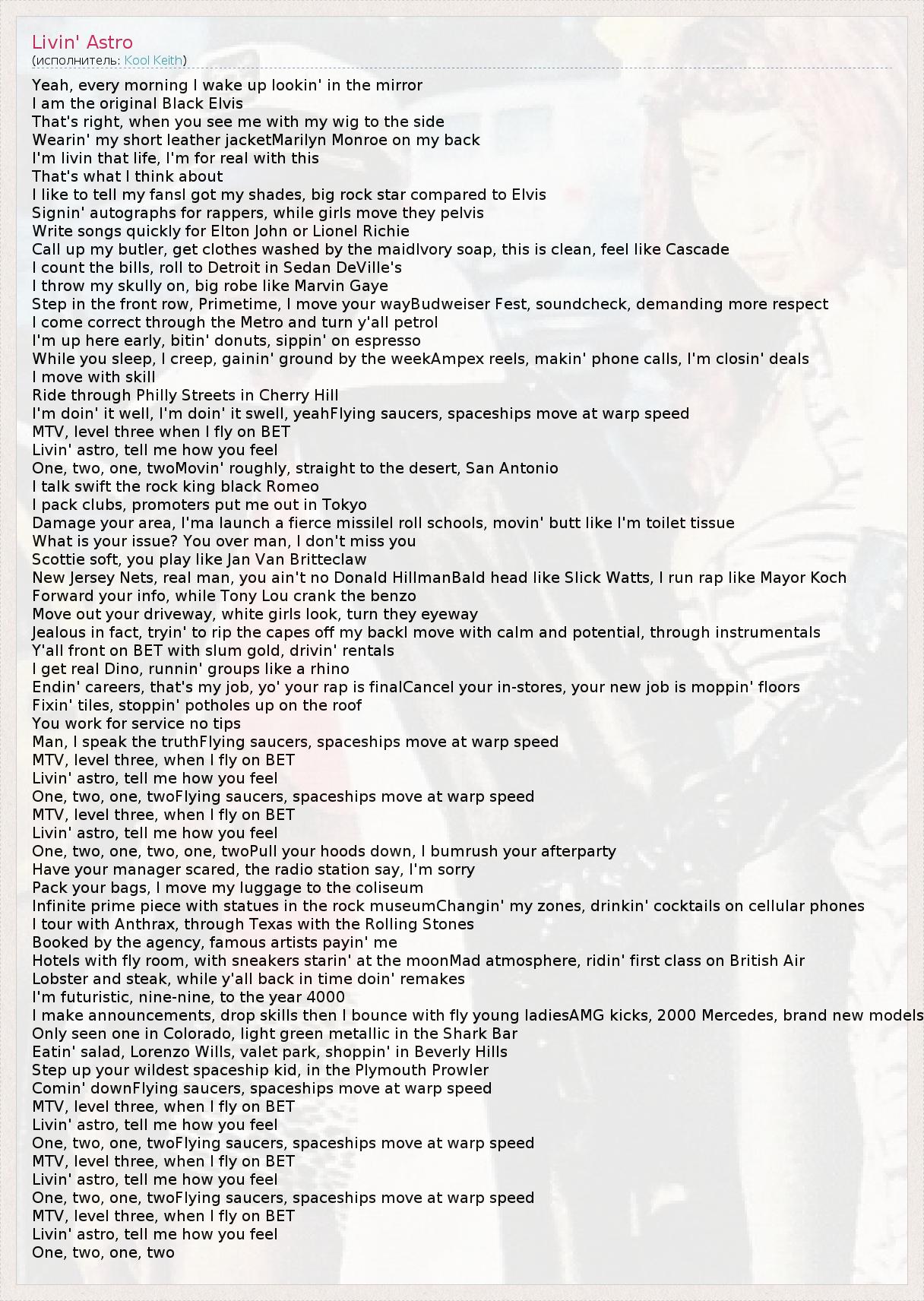 А как ты думаешь, о чем песня "Livin' Astro" ?