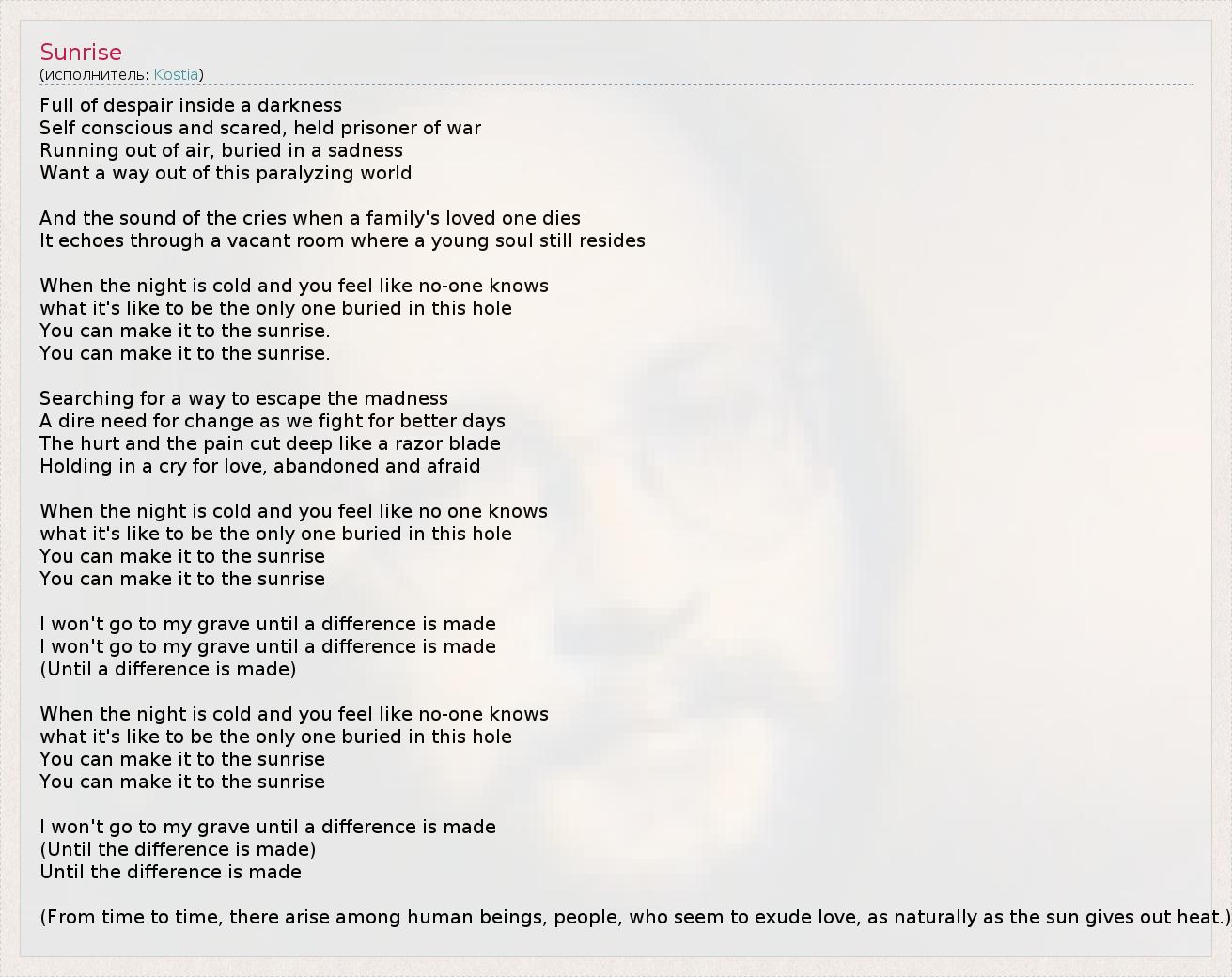 Когда ночь холодна, и когда тебе кажется, что никто не знает,
