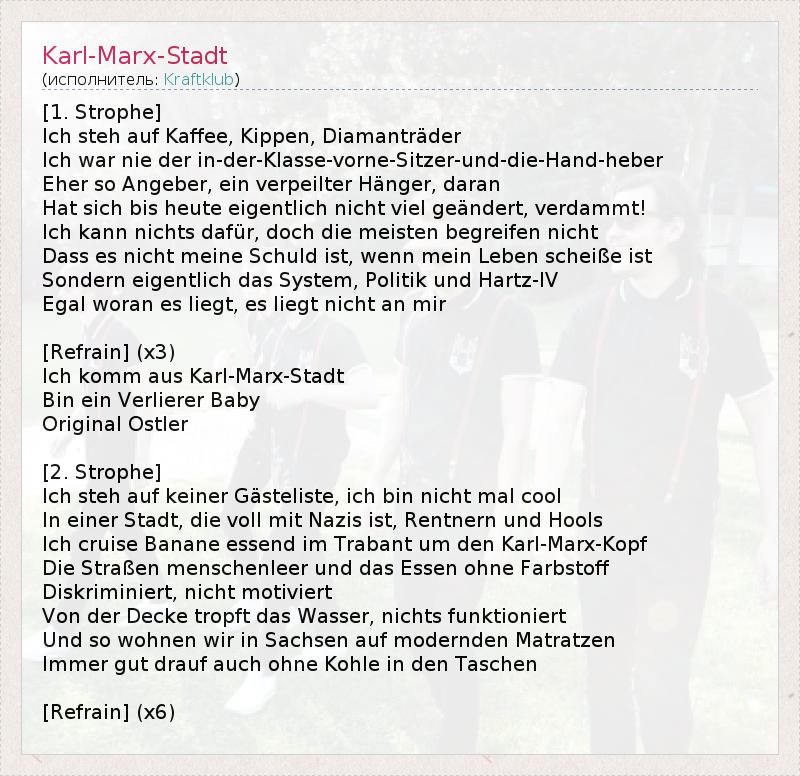 А как ты думаешь, о чем песня "Karl-Marx-Stadt" ?