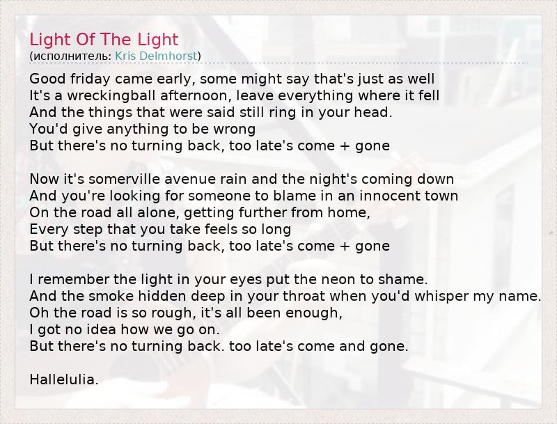 А как ты думаешь, о чем песня "Light Of The Light" ?