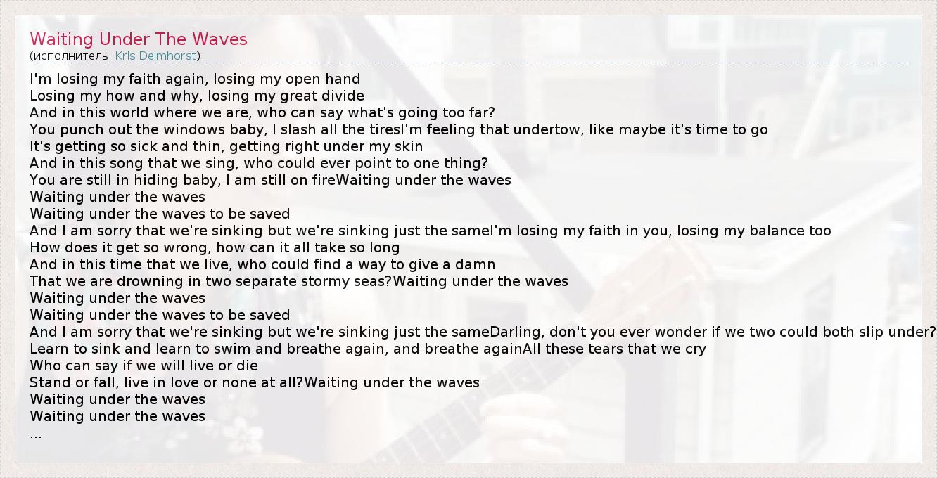 А как ты думаешь, о чем песня "Waiting Under The Waves" ?