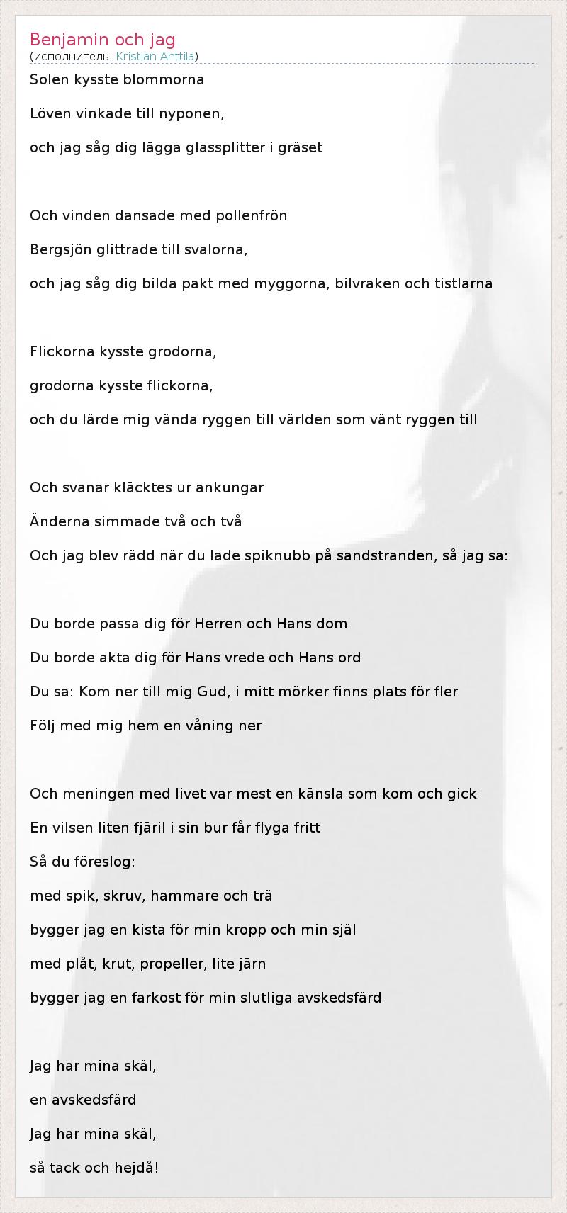 А как ты думаешь, о чем песня "Benjamin och jag" ?