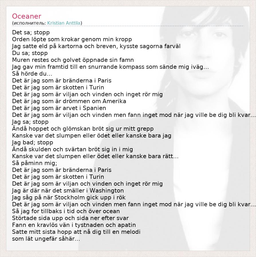 Это интересно:Кристиан Анттила (родился 4 марта 1979 года в Шёвде, Швеция) - музыкант, композитор и продюсер из Швеции. Его отец был финном, а мать - уроженка Болгарии. Первый год своей жизни Кристиан провел в Шёвде, а затем переехал вместе с мамой в Гётеборг.Дебютный альбом Natta De Mina был выпущен в 2003 году. Кристиан записал его в одиночку: сам играл на всех инструментах, микшировал... продолжение