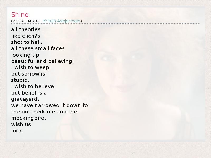 Это интересно:Очаровательнейшая певица огненно-рыжей масти Кристин Асбьорнсен - неоднократная победительница различных музыкальных конкурсов. Ее хрипловатые стенания сладко и тесно вписываются и в соул, и в кантри-рок, и в подобие того, что когда-то называлось эйсид-джазом. Асбьорнсен в свое время много каталась по Африке, оттого ее голос сух и горяч, а музыка бывает по-черному расторопна и по-бродяжьи... продолжение
