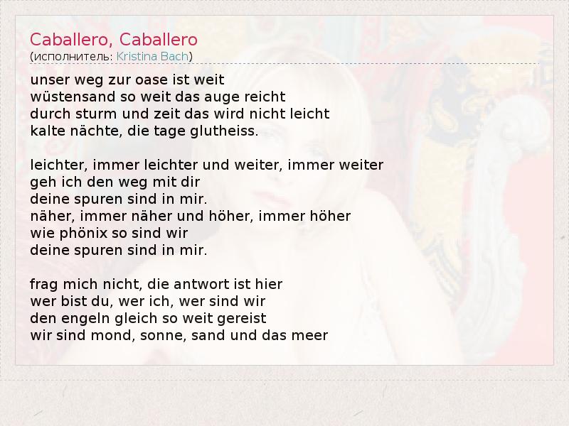 А как ты думаешь, о чем песня "Caballero, Caballero" ?