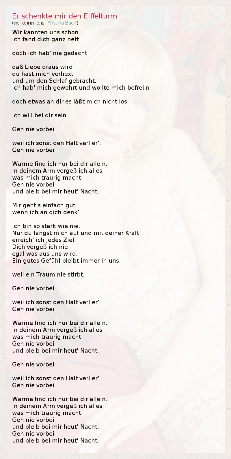 А как ты думаешь, о чем песня "Er schenkte mir den Eiffelturm" ?