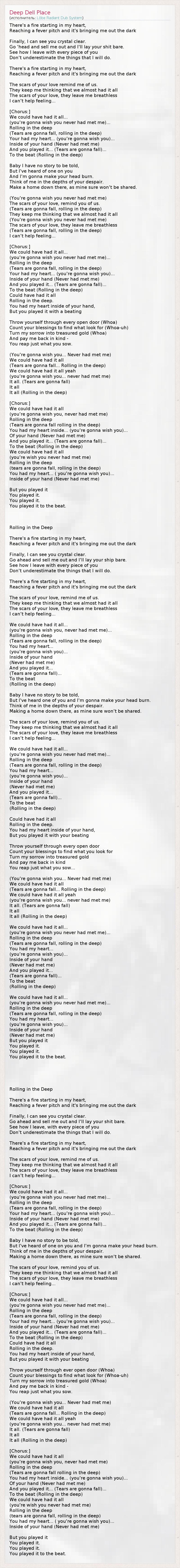 А как ты думаешь, о чем песня "Deep Dell Place" ?