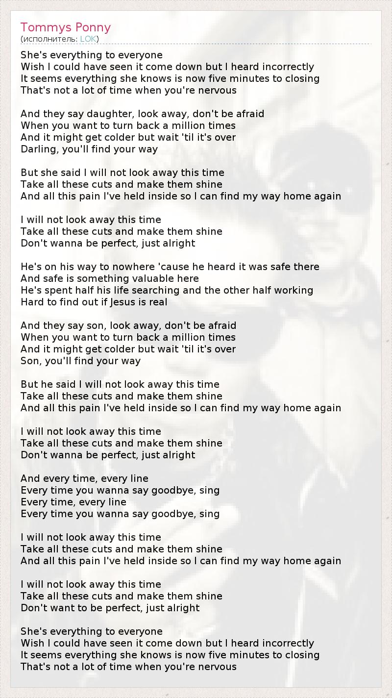 А как ты думаешь, о чем песня "Tommys Ponny" ?