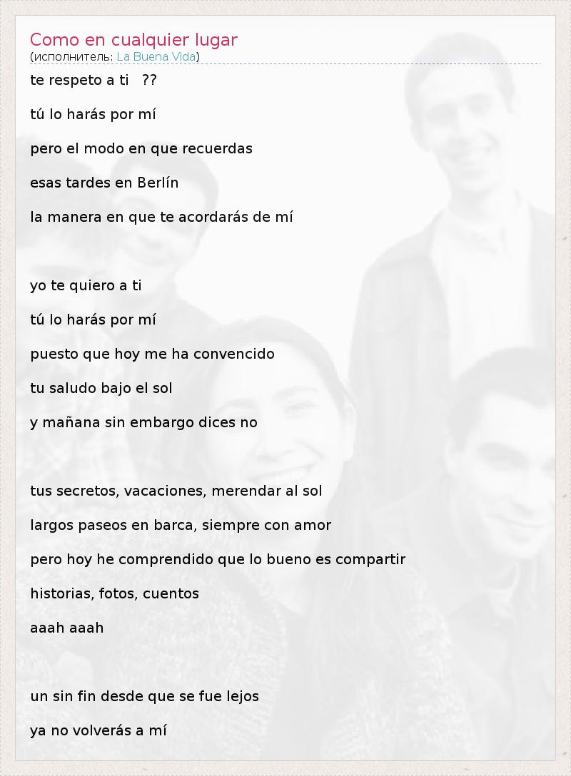 А как ты думаешь, о чем песня "Como en cualquier lugar" ?