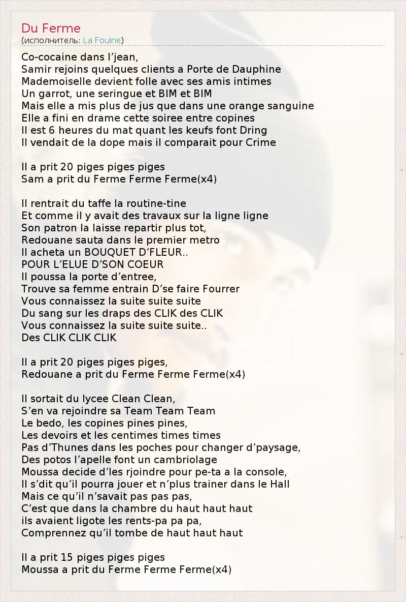 А как ты думаешь, о чем песня "Du Ferme" ?