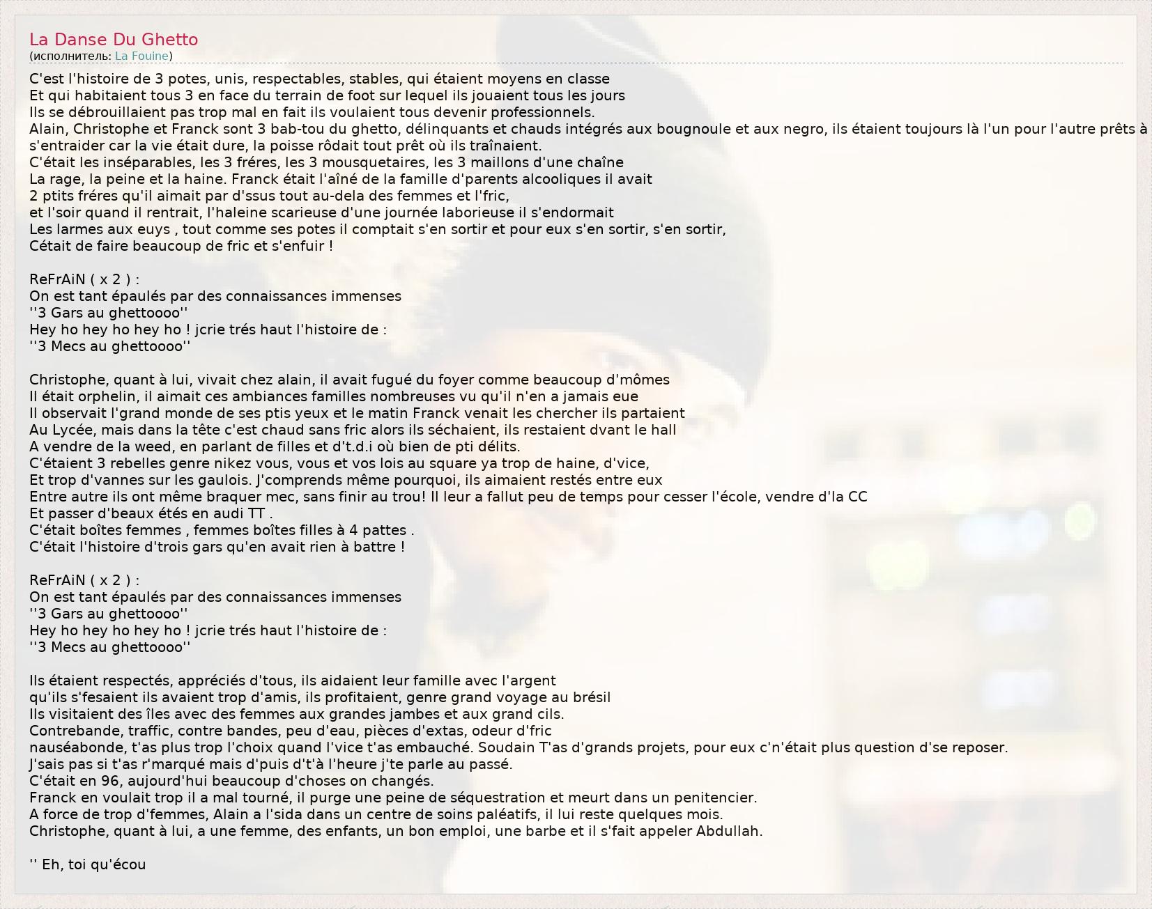 А как ты думаешь, о чем песня "La Danse Du Ghetto" ?