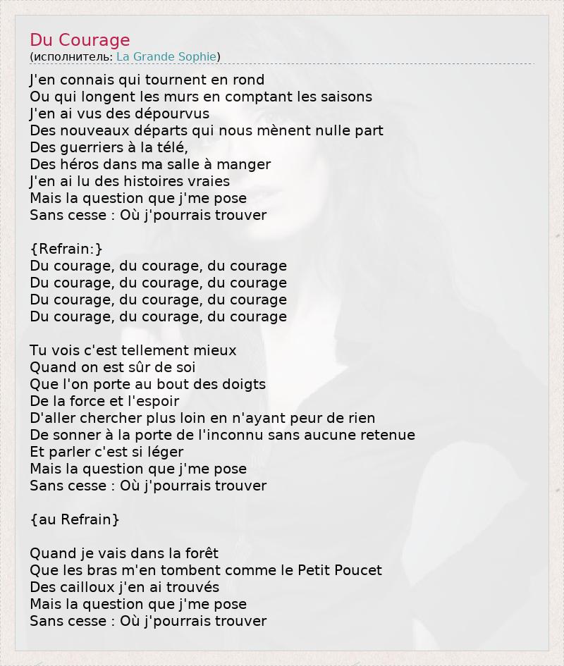 А как ты думаешь, о чем песня "Du Courage" ?