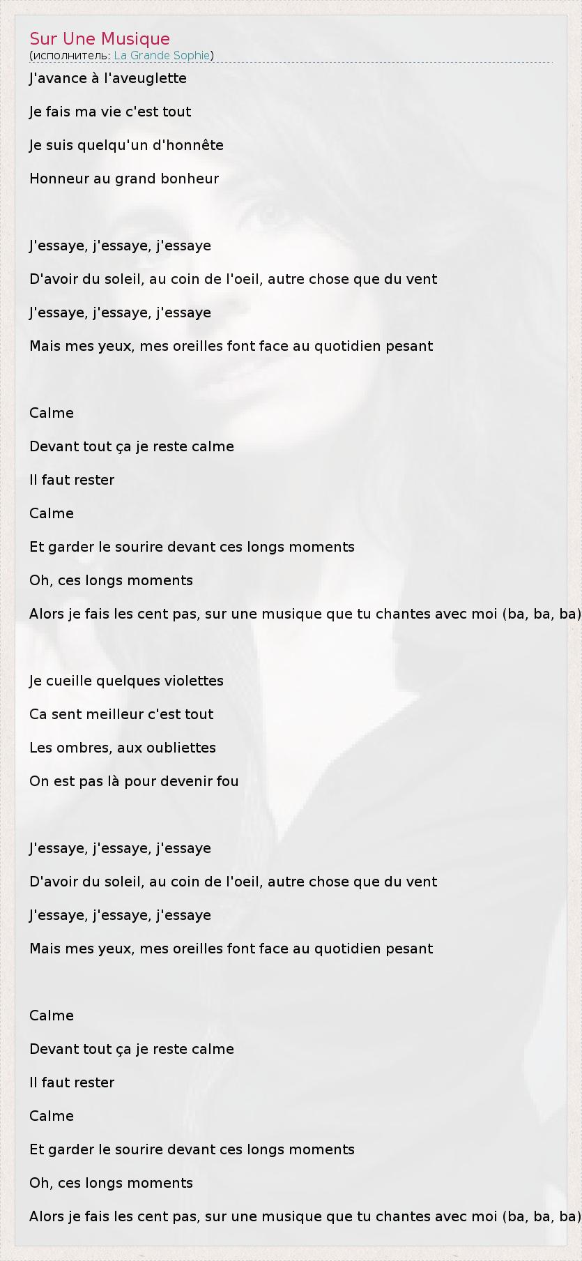 А как ты думаешь, о чем песня "Sur Une Musique" ?
