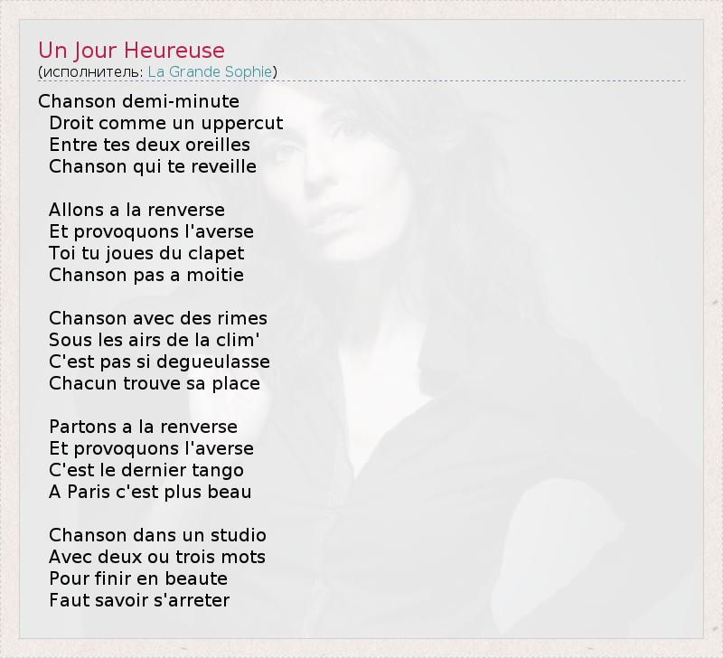 А как ты думаешь, о чем песня "Un Jour Heureuse" ?
