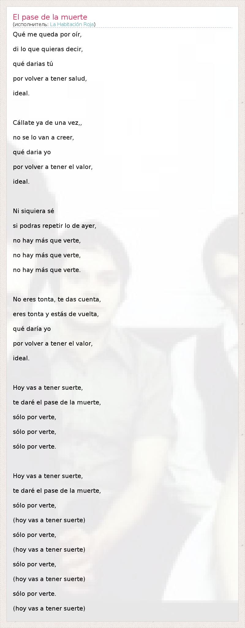 А как ты думаешь, о чем песня "El pase de la muerte" ?