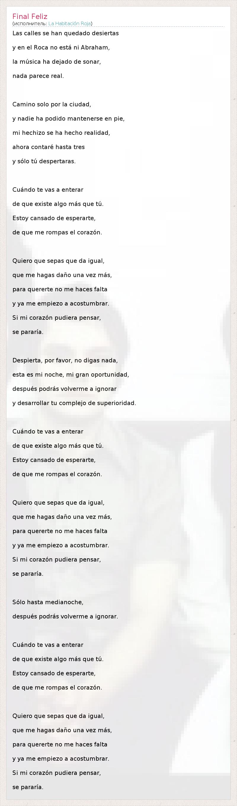 А как ты думаешь, о чем песня "Final Feliz" ?