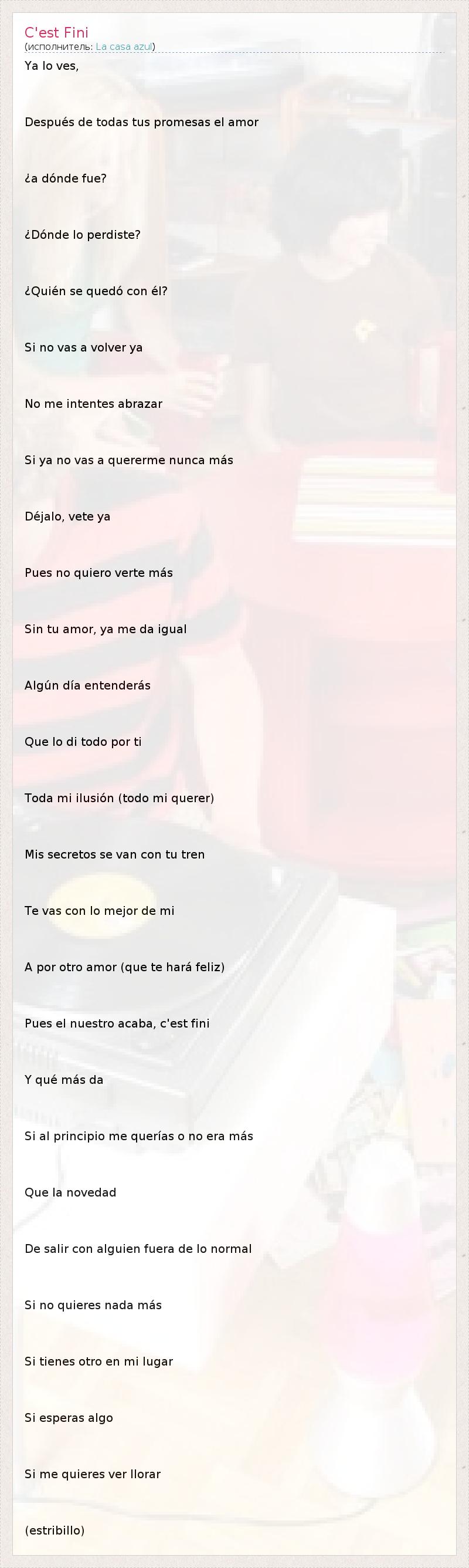 А как ты думаешь, о чем песня "C'est Fini" ?
