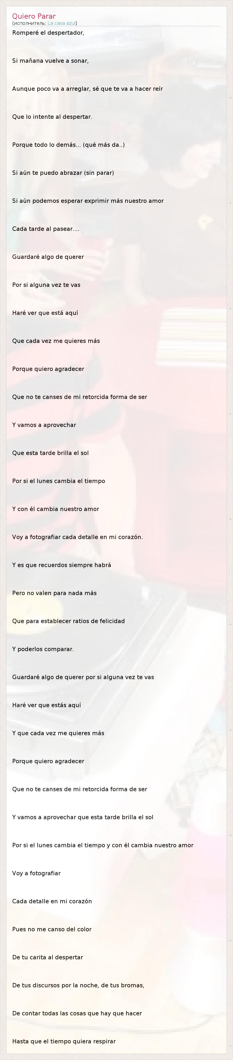 А как ты думаешь, о чем песня "Quiero Parar" ?