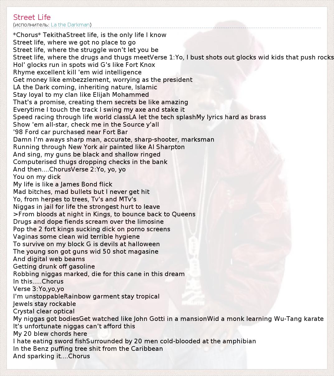 Street life, where the drugs and thugs meetVerse 1:Yo, I bust shots out glocks wid kids that push rocks