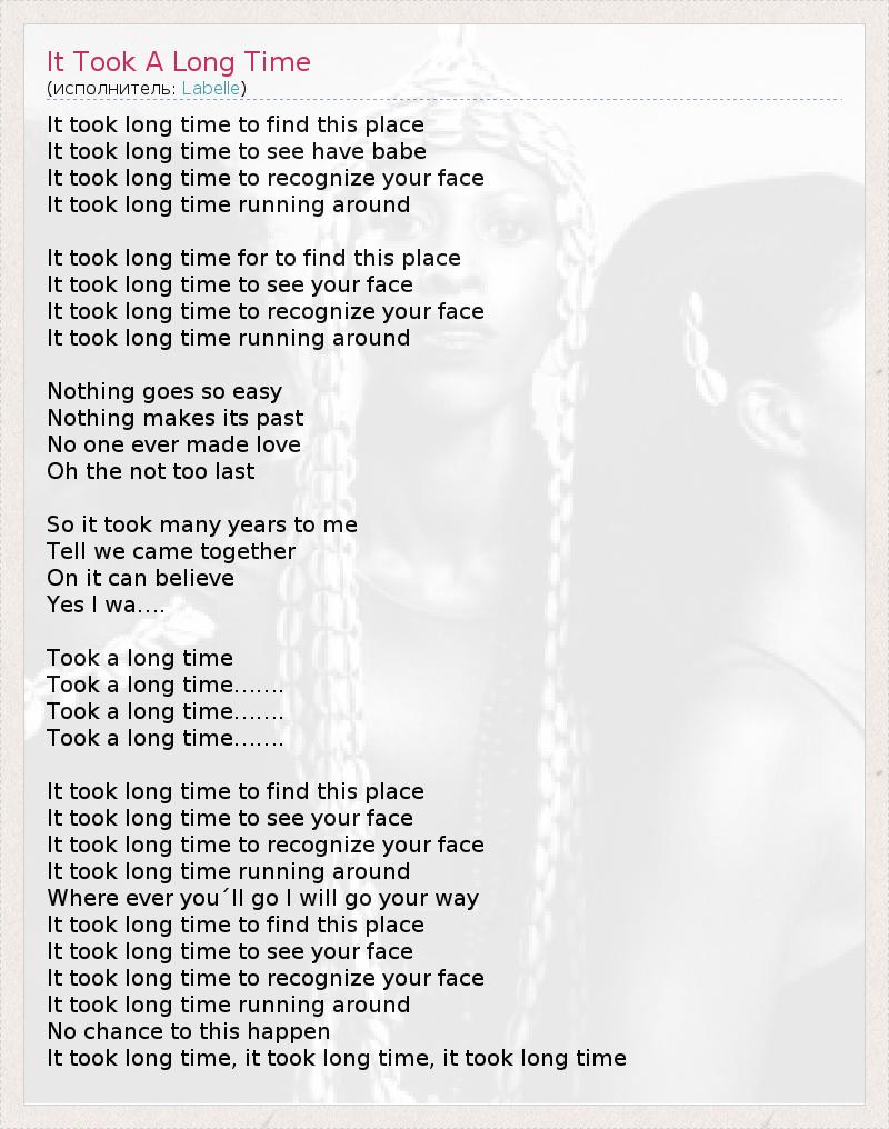 А как ты думаешь, о чем песня "It Took A Long Time" ?