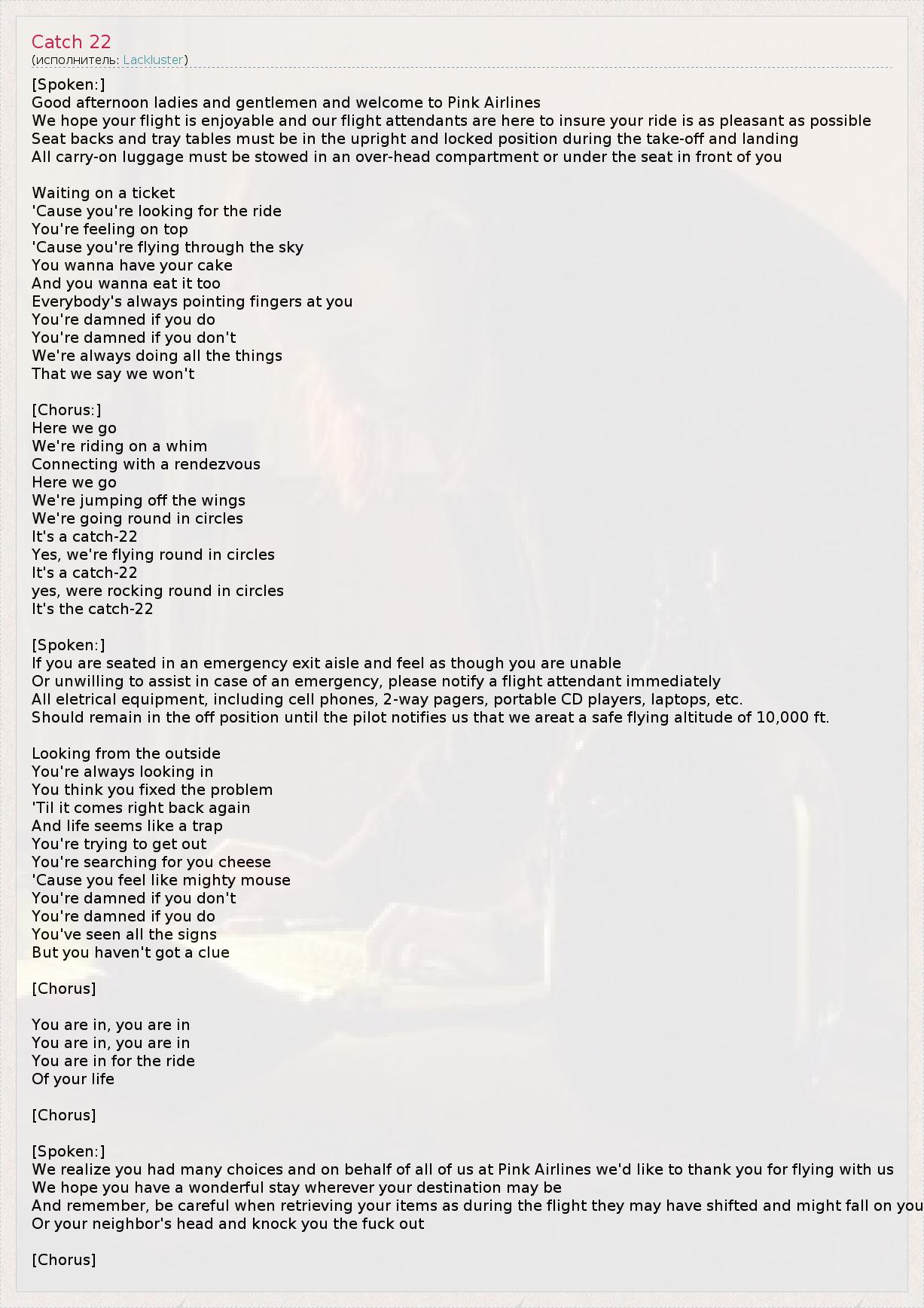 *роман американского писателя Джозефа Хеллера. Основная идея которого " всякий, кто заявляет о себе, что он сумасшедший, и пытается тем самым освободиться от военной обязанности, на самом деле сумасшедшим не является, так как такое заявление явно говорит о здравомыслии…"