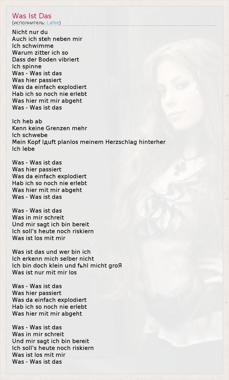 А как ты думаешь, о чем песня "Was Ist Das" ?