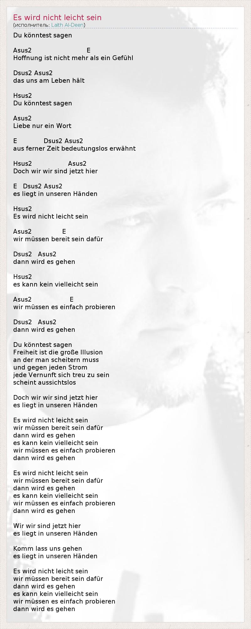 А как ты думаешь, о чем песня "Es wird nicht leicht sein" ?