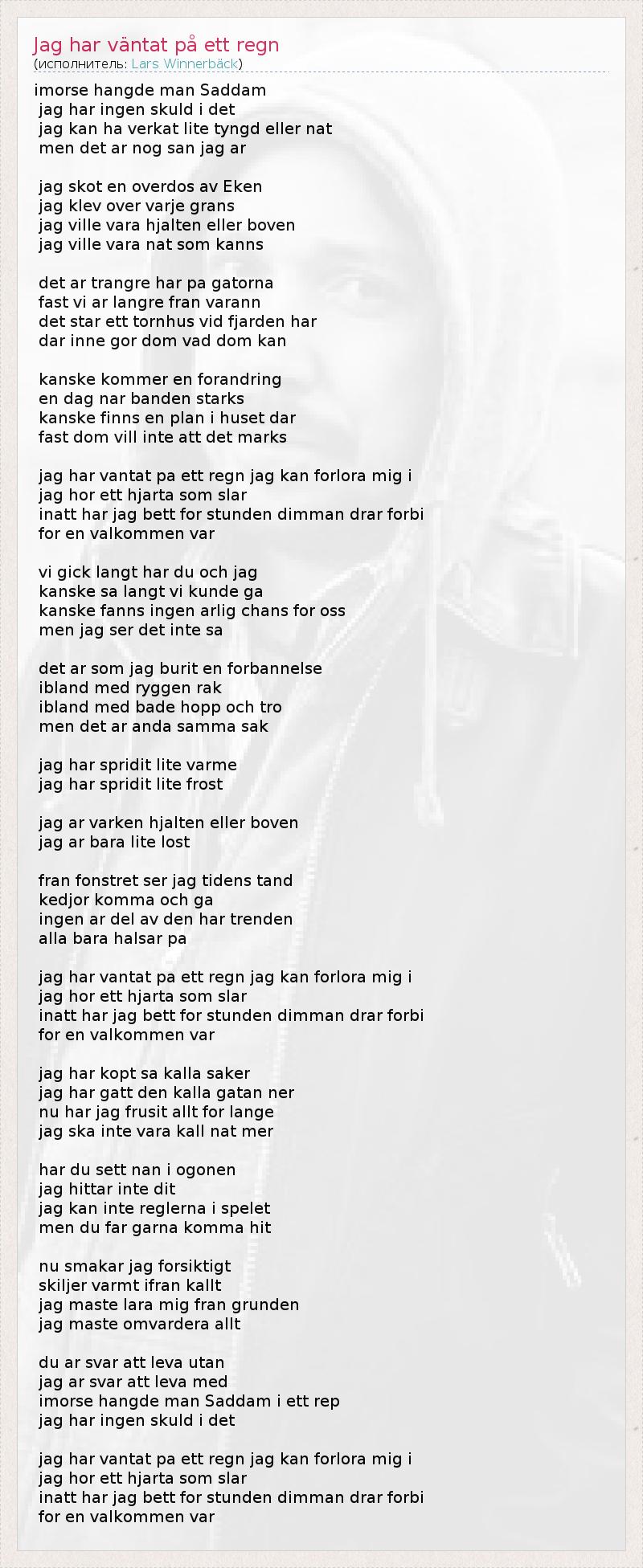 ГлавнаяИсполнителиLars WinnerbäckJag har väntat på ett regn