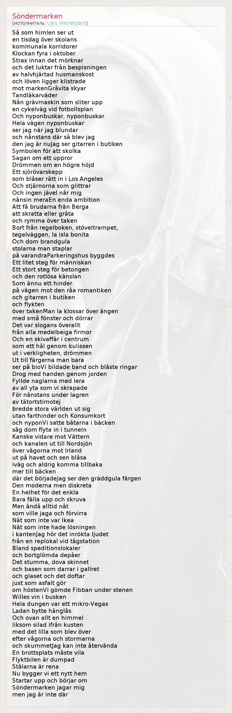 А как ты думаешь, о чем песня "Söndermarken" ?