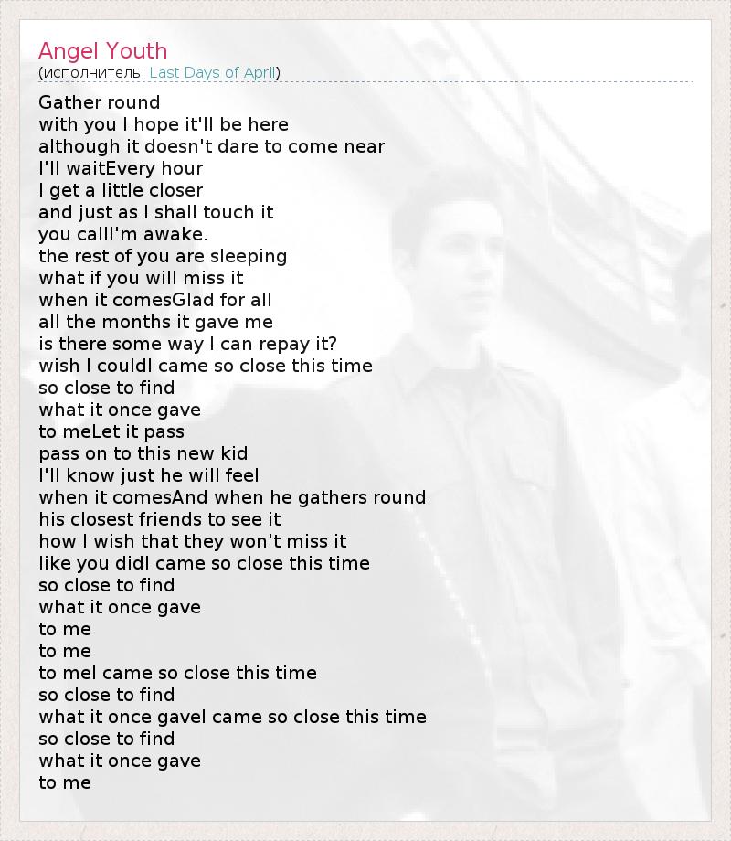А как ты думаешь, о чем песня "Angel Youth" ?