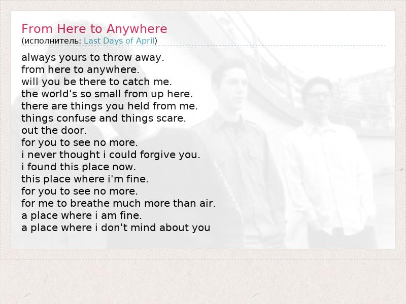 А как ты думаешь, о чем песня "From Here to Anywhere" ?