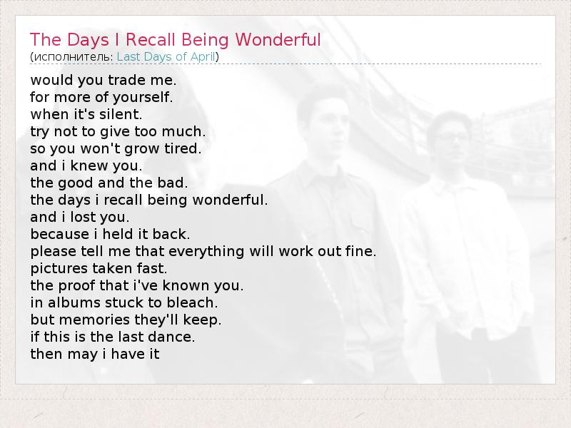 А как ты думаешь, о чем песня "The Days I Recall Being Wonderful" ?