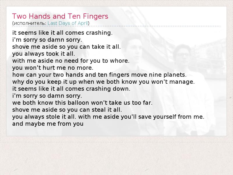 А как ты думаешь, о чем песня "Two Hands and Ten Fingers" ?