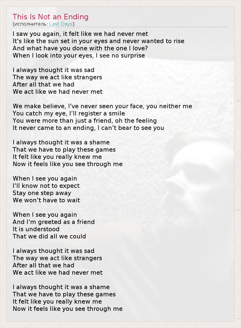 А как ты думаешь, о чем песня "This Is Not an Ending" ?