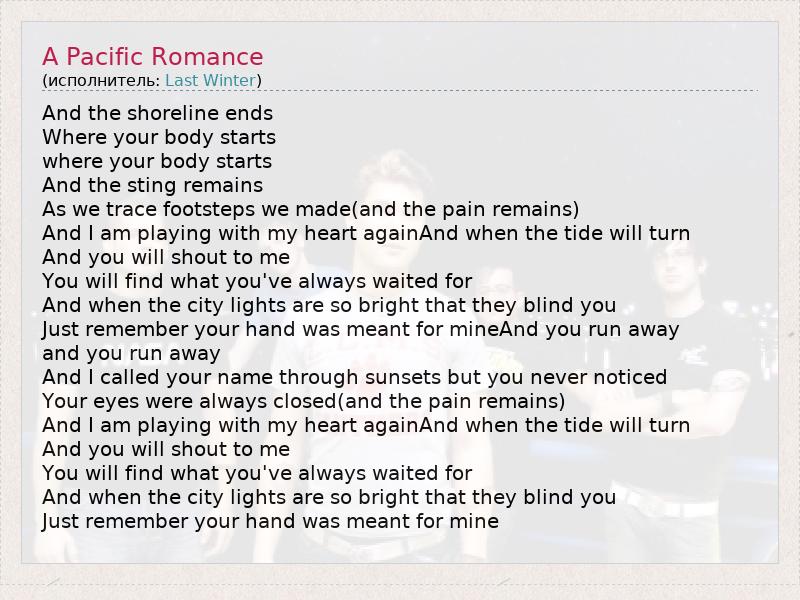 А как ты думаешь, о чем песня "A Pacific Romance" ?