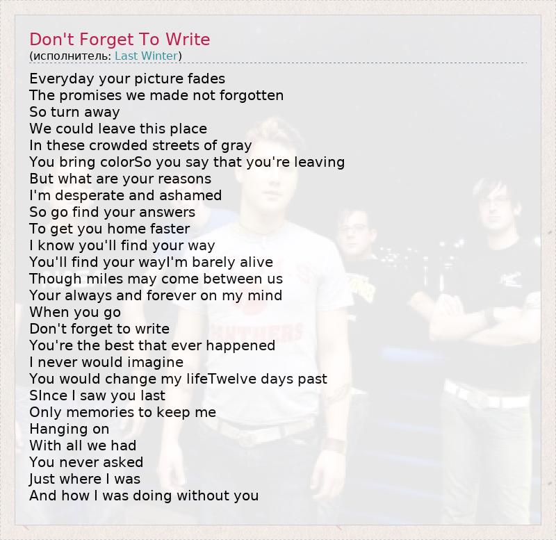 А как ты думаешь, о чем песня "Don't Forget To Write" ?