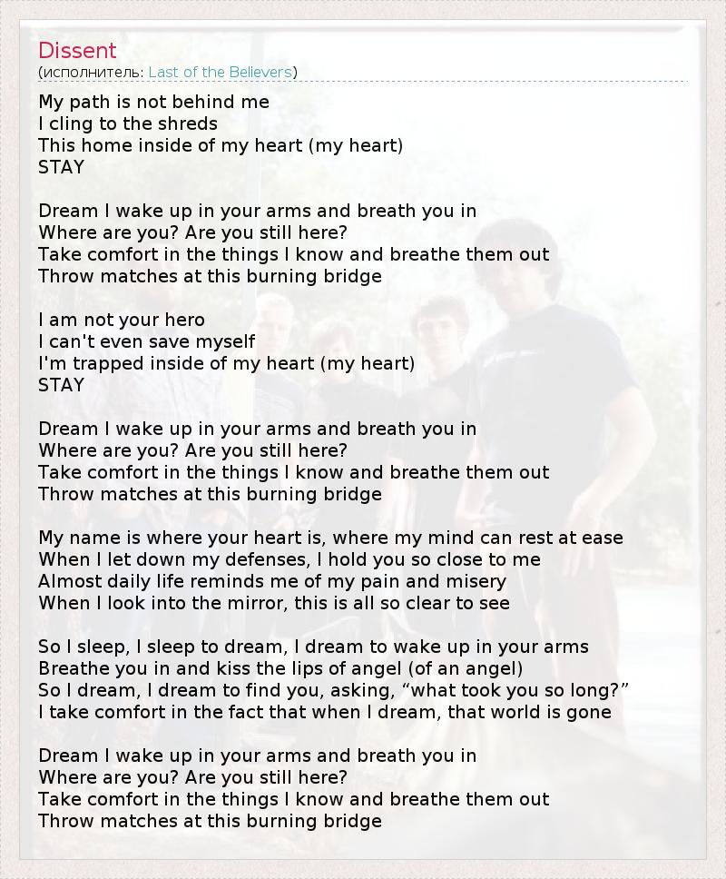 So I sleep, I sleep to dream, I dream to wake up in your arms