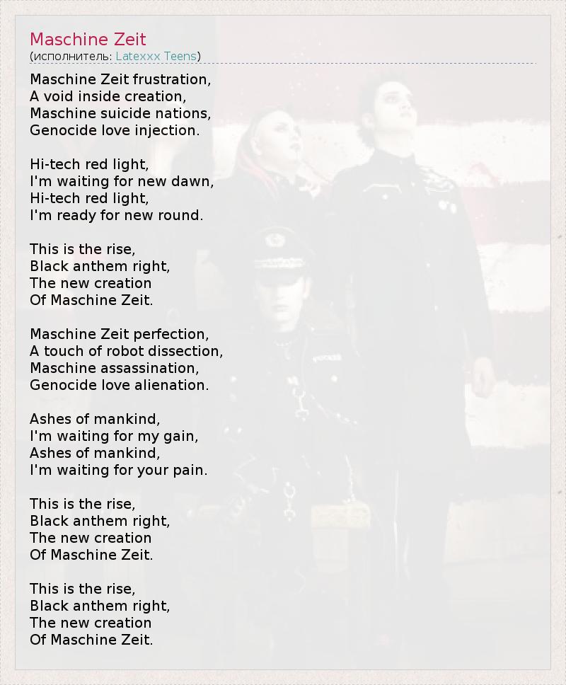 А как ты думаешь, о чем песня "Maschine Zeit" ?