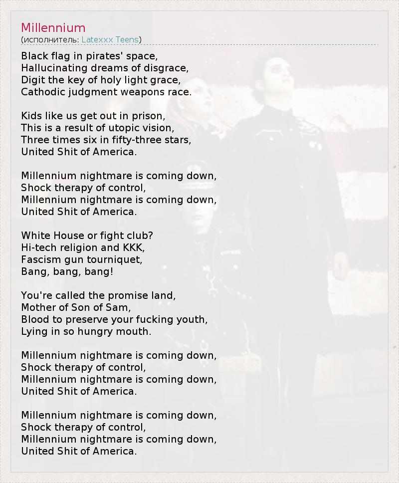 Это интересно:Androgynous, technocratic, iconoplastic…latex - это материал, из которого изготавливают фетиши.xXx - символ порнографической продукции.teens - возраст, когда человеческие создания познают жизнь и готовы расстаться с невинностью.Всё вместе это означает быть молодым, быть ненормальным, поиметь всех, но не позволять поиметь себя обществу с его тупыми законами,... продолжение