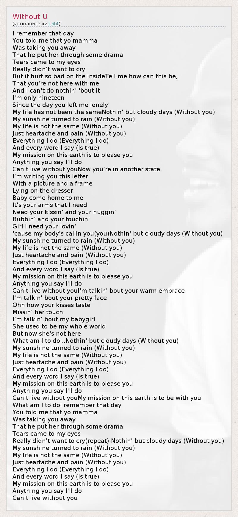 'cause my body's callin you(you)Nothin' but cloudy days (Without you)