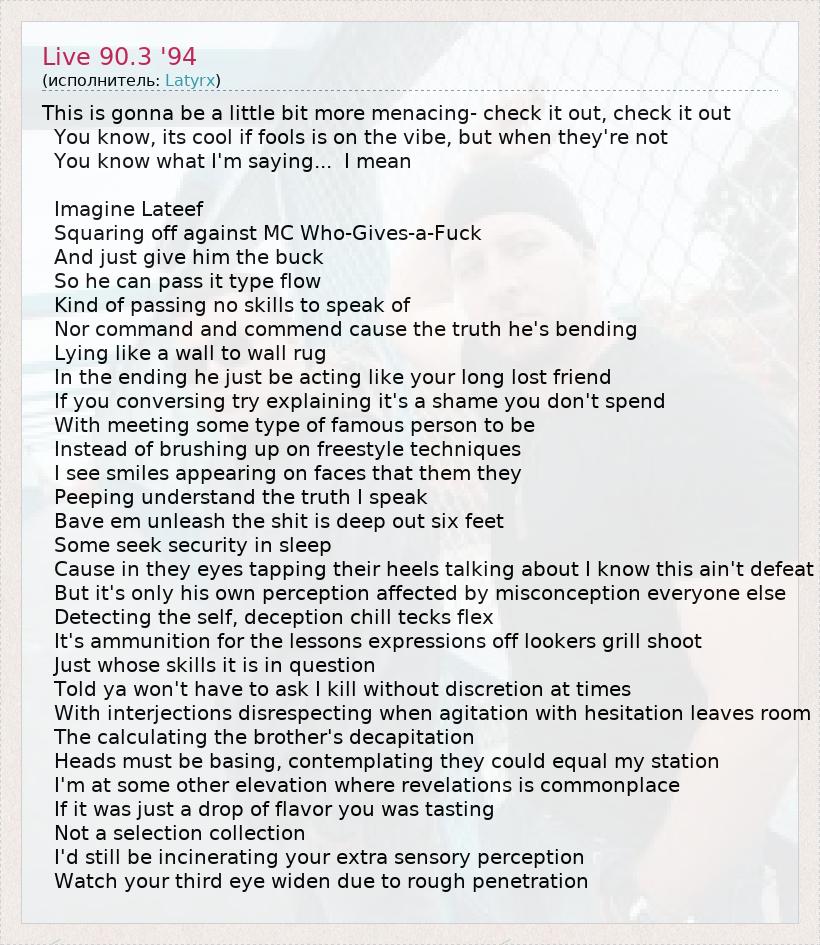 А как ты думаешь, о чем песня "Live 90.3 '94" ?