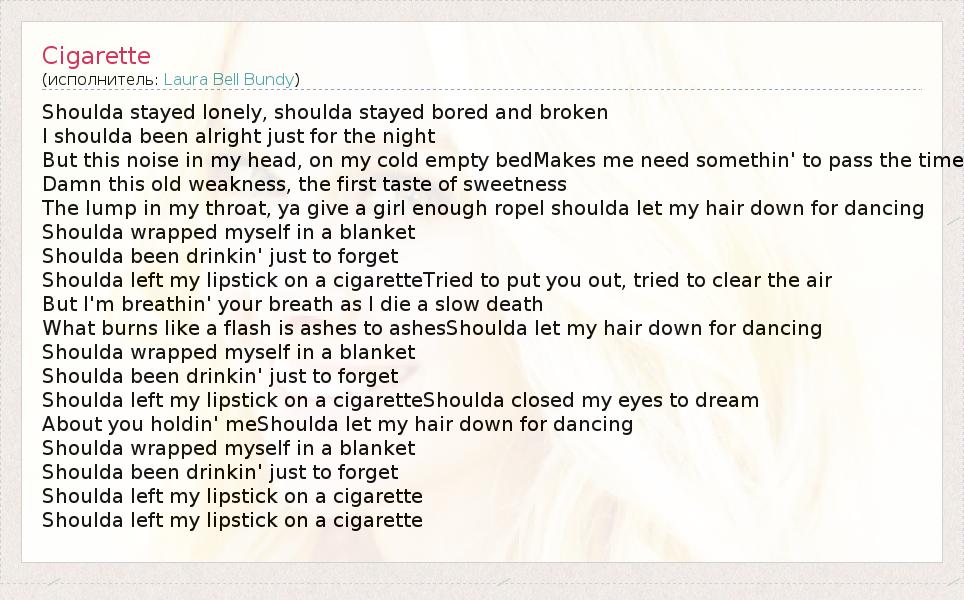 Shoulda left my lipstick on a cigarette
