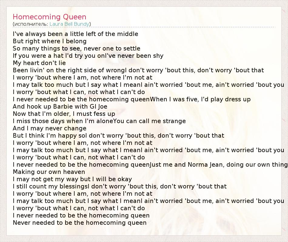 А как ты думаешь, о чем песня "Homecoming Queen" ?