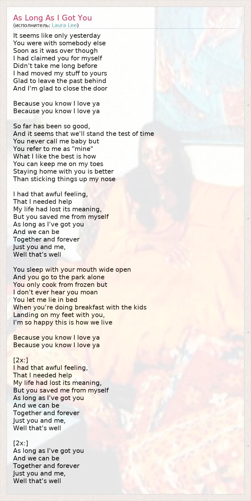 А как ты думаешь, о чем песня "As Long As I Got You" ?