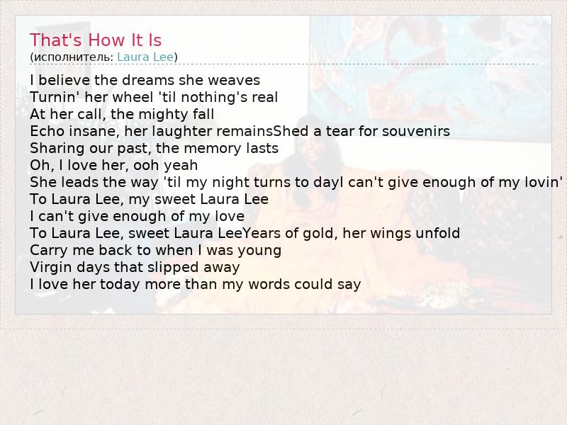 А как ты думаешь, о чем песня "That's How It Is" ?