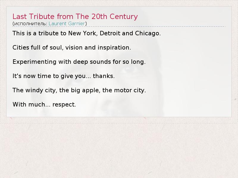 ГлавнаяИсполнителиLaurent GarnierLast Tribute from The 20th Century