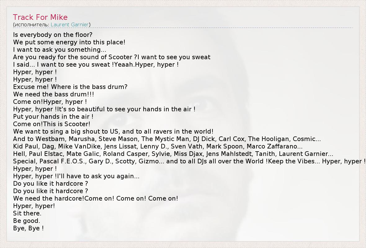 А как ты думаешь, о чем песня "Track For Mike" ?