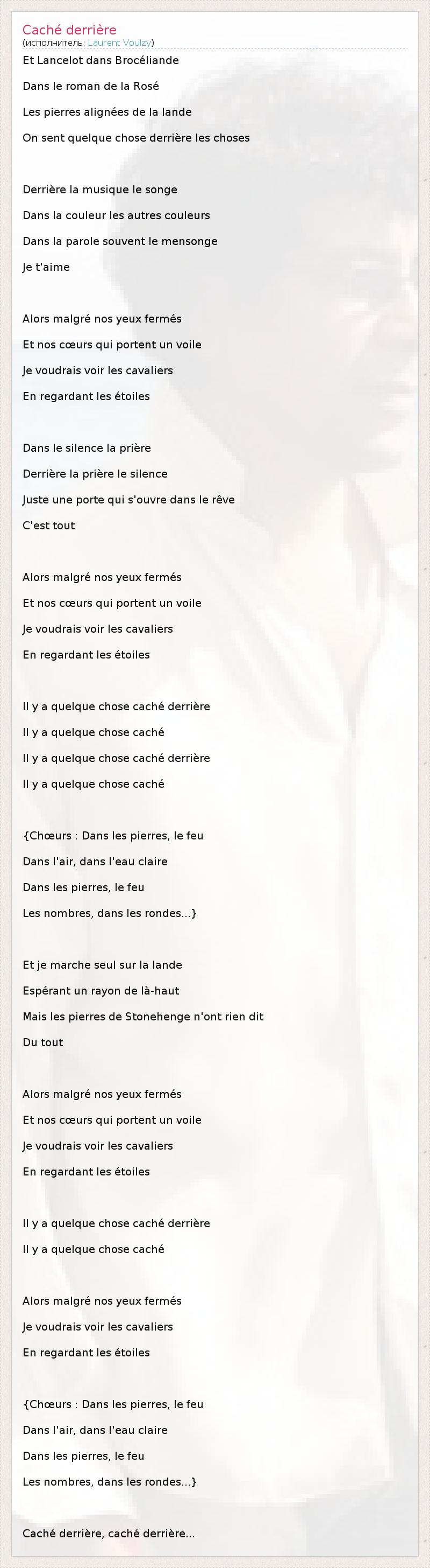 А как ты думаешь, о чем песня "Caché derrière" ?