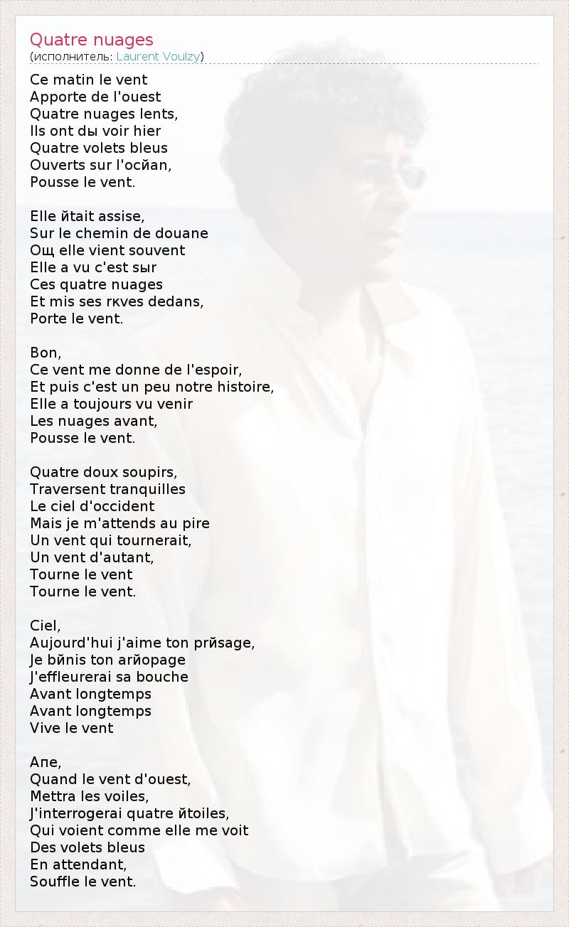 А как ты думаешь, о чем песня "Quatre nuages" ?